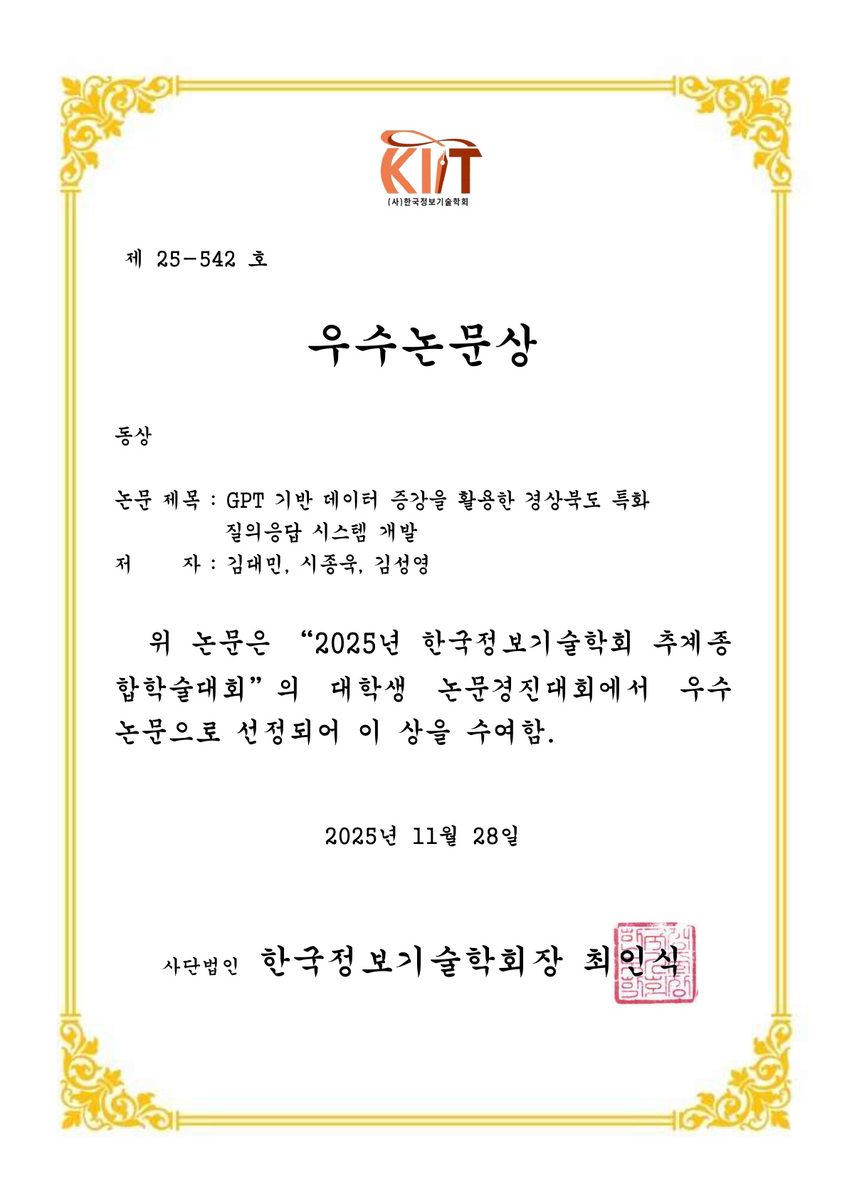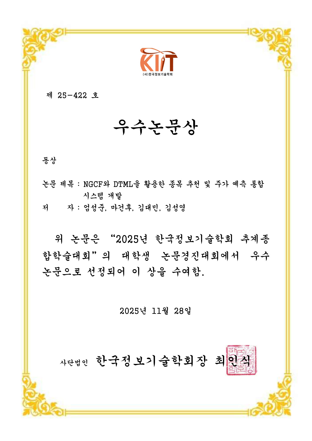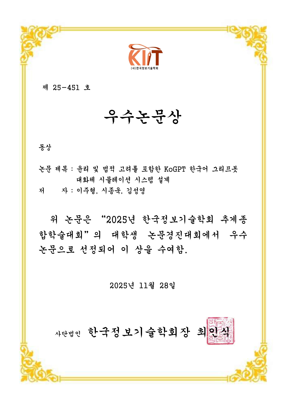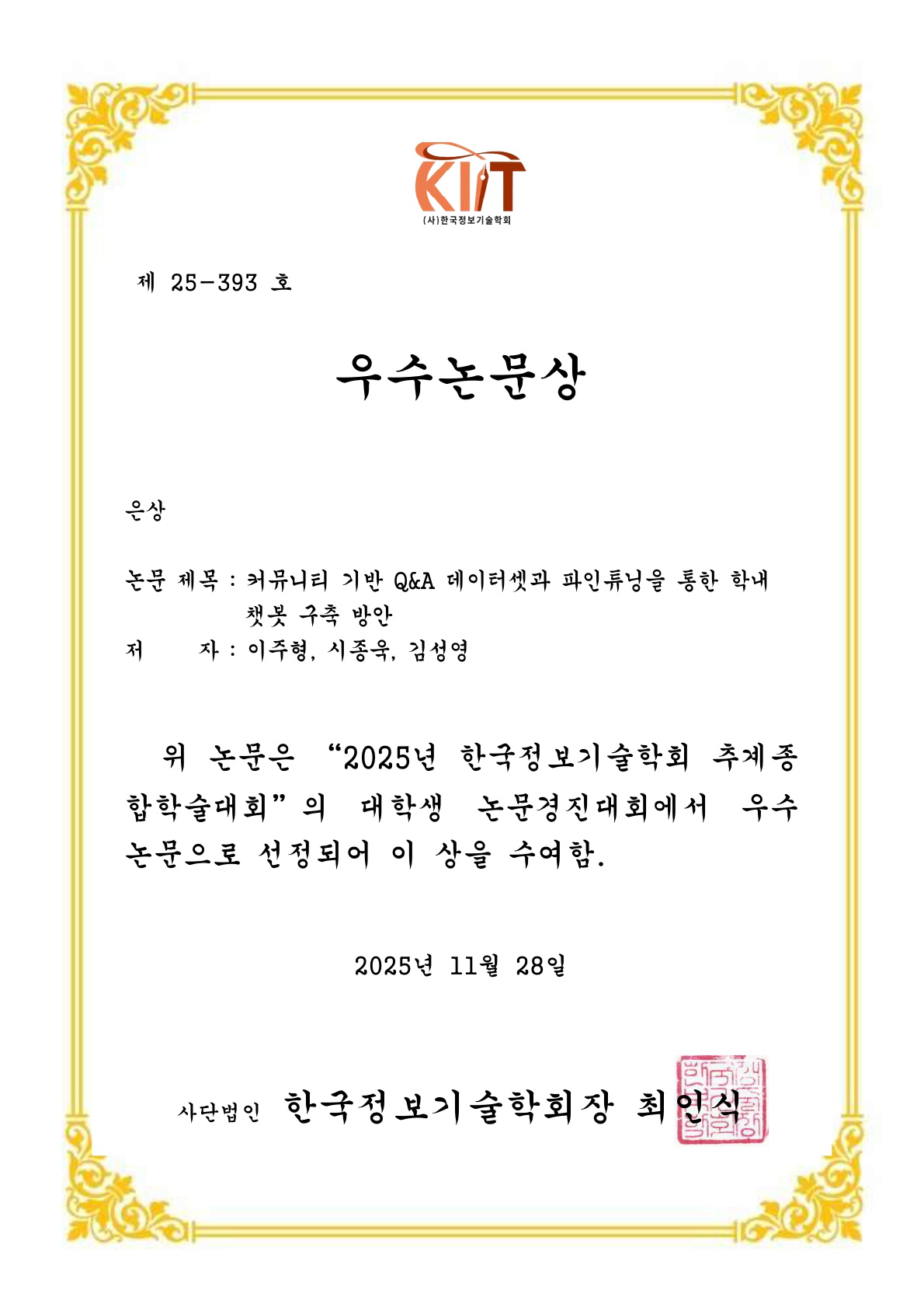 한국정보기술학회 대학생논문경진대회